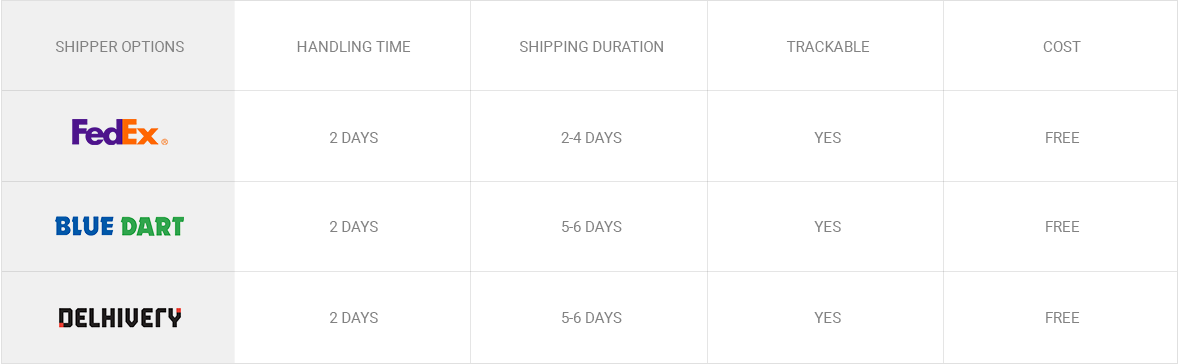 We'll send you a confirmation email containing item details and package Tracking ID as soon as the order is shipped.