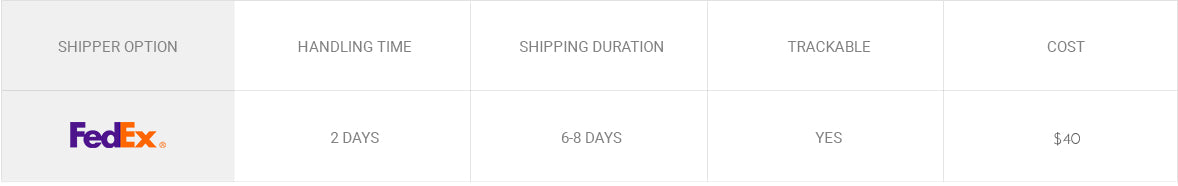 Manifest Design delivers your orders via FedEx. We accept orders for in-stock and ready to ship items only.